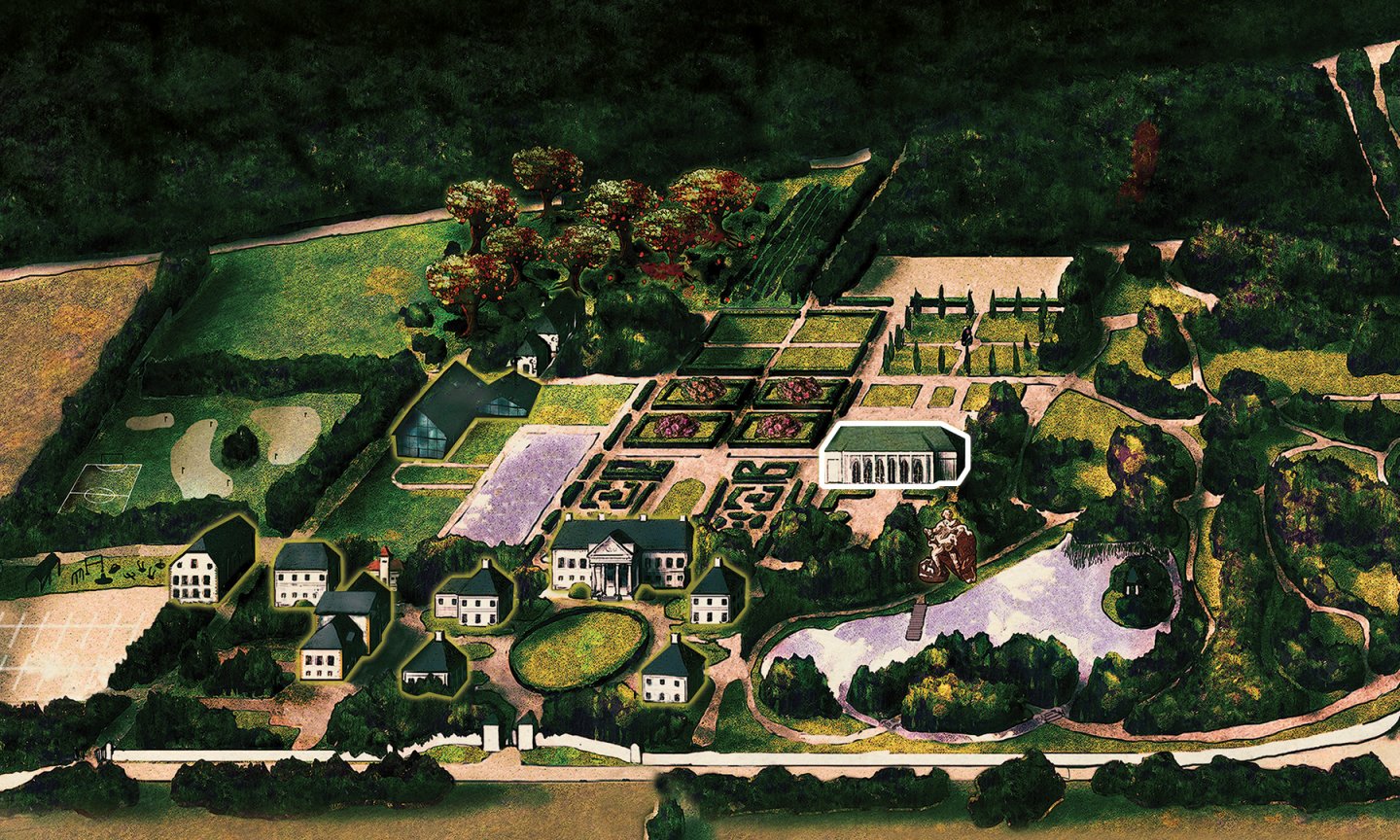 Jedna z dwóch sal w budynku Nowa Oranżeria. Klimatyczna, przestronna, piękna sala z wyjściem do ogrodu. Ozdobą sali są kominek, bar oraz unikatowy sufit świetlny.